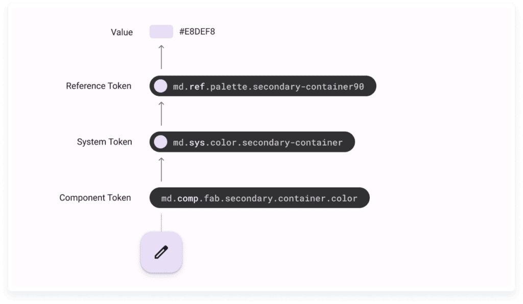Finally, Tier-3 tokens are specific to components and link to Tier-2 tokens.
