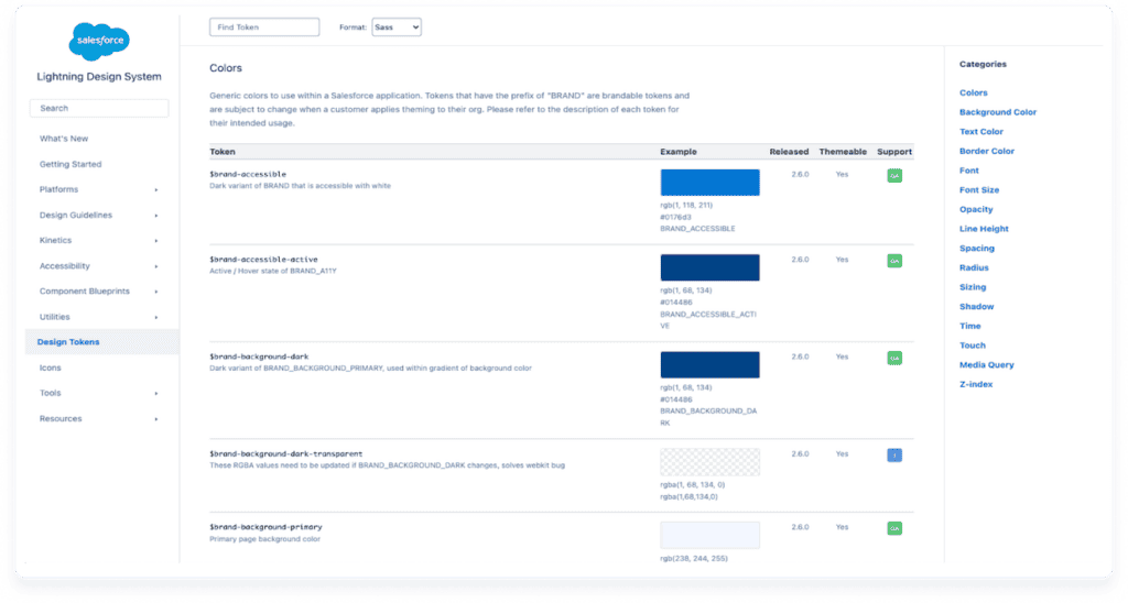 The term ‘design token’ was first coined by Jina Anne at Salesforce in 2014. They can represent a wide range of properties and link (‘alias’) to other tokens, making them scalable by nature.