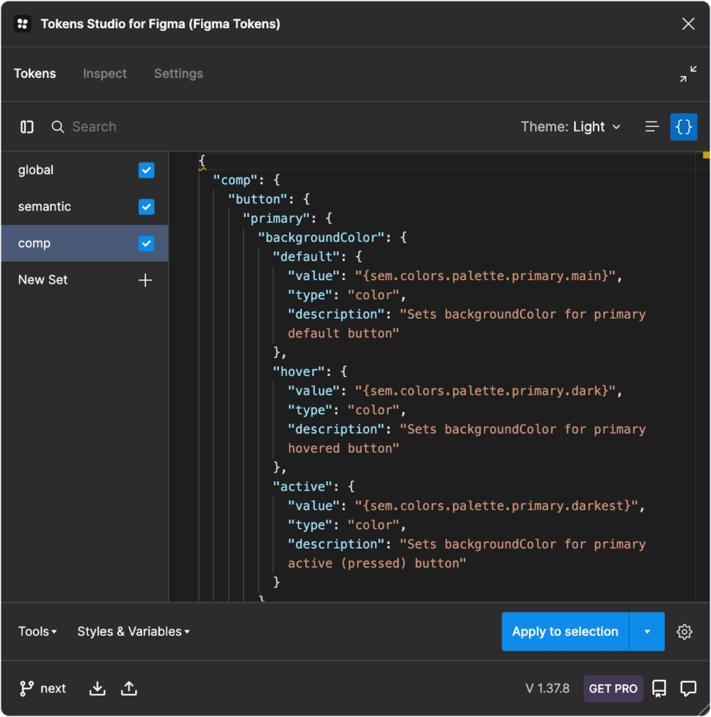 - Tokens found in the ‘component’ layer begin with ‘comp.’
